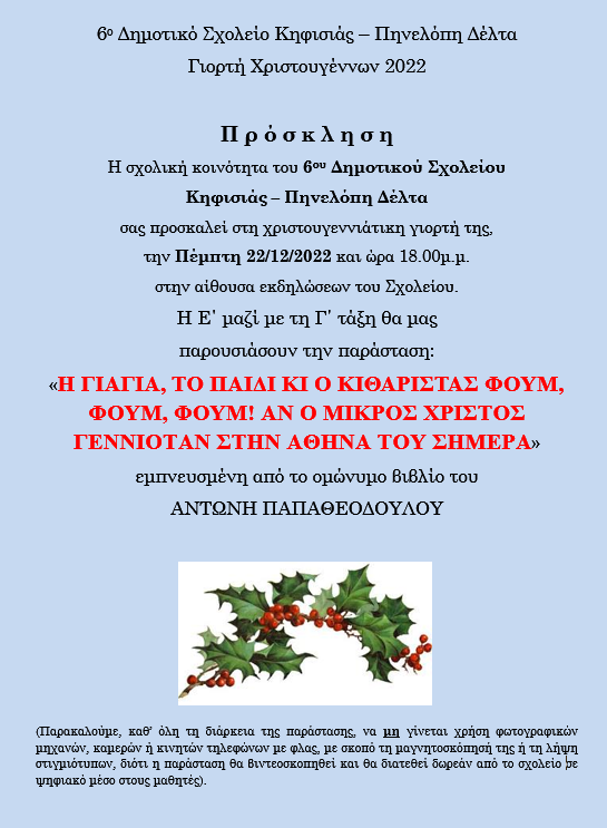 Σας ευχόμαστε καλές γιορτές.